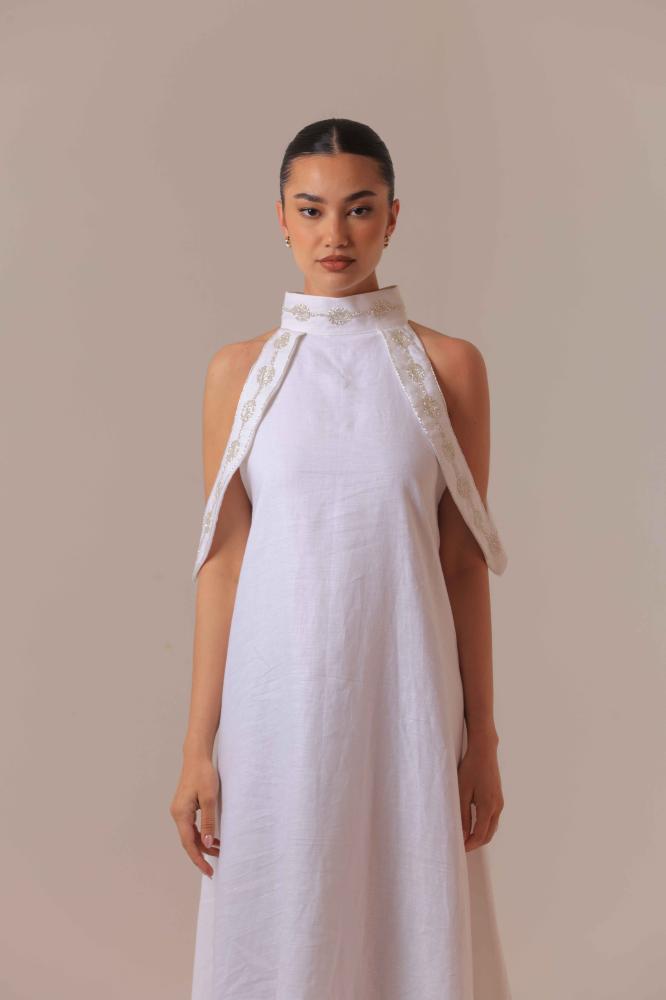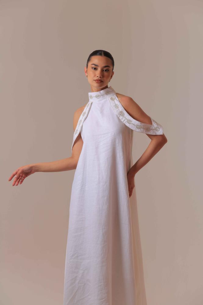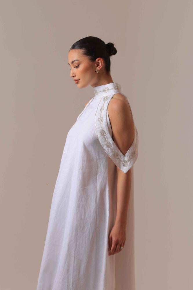 مصمم بقصة كلوش ومبطن بقماش شيفون خفيف