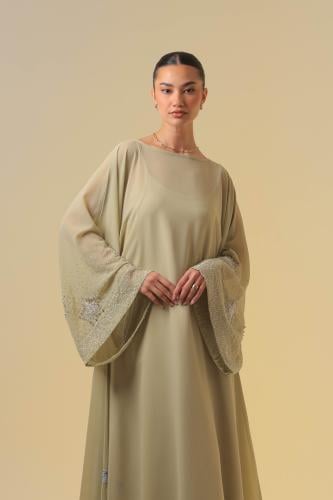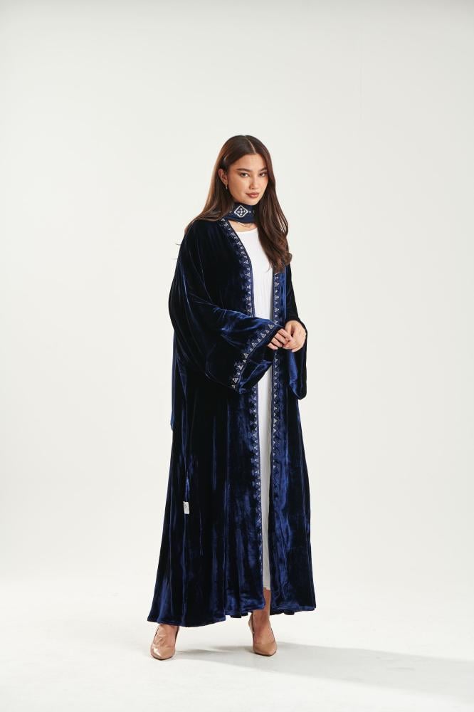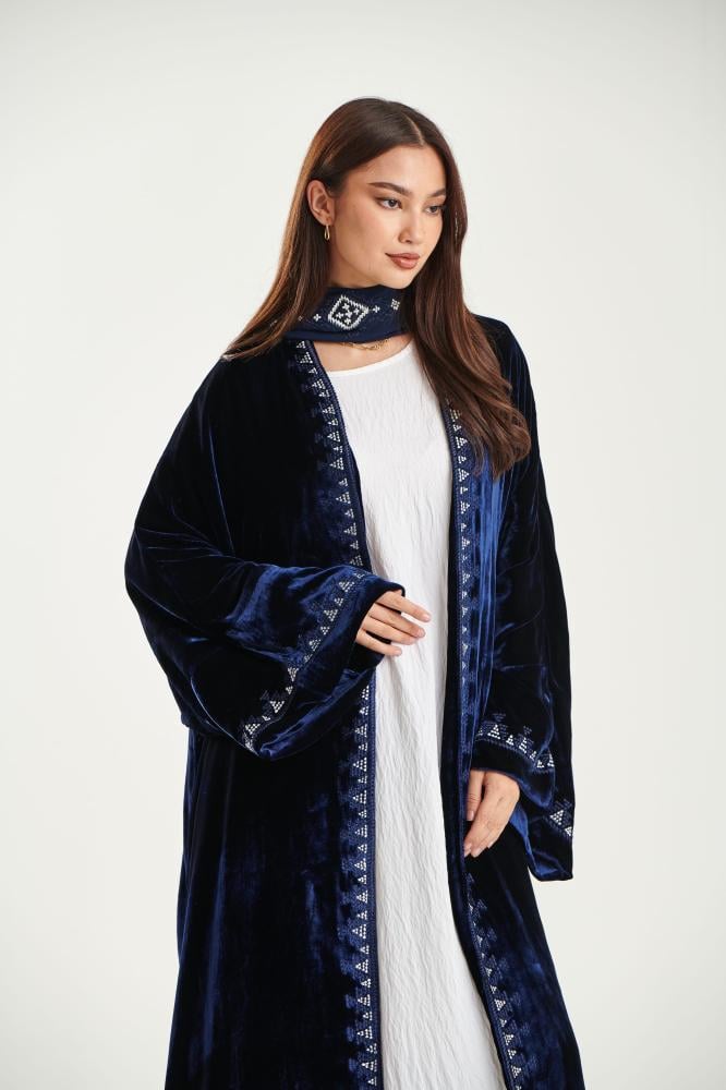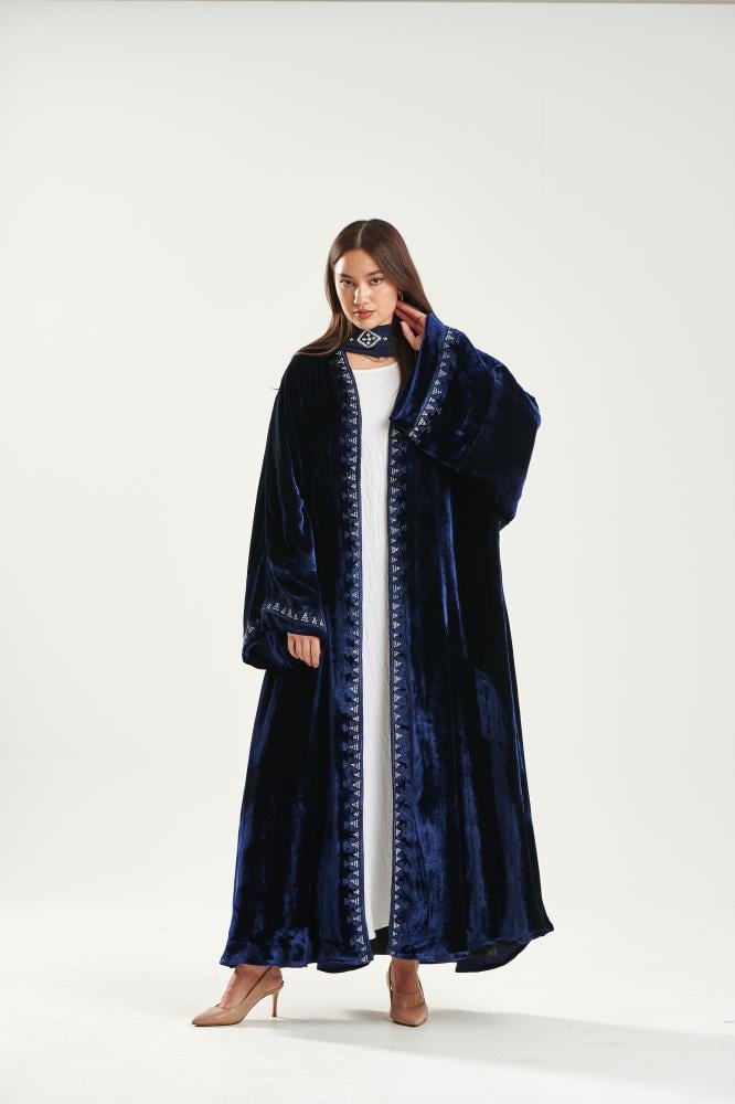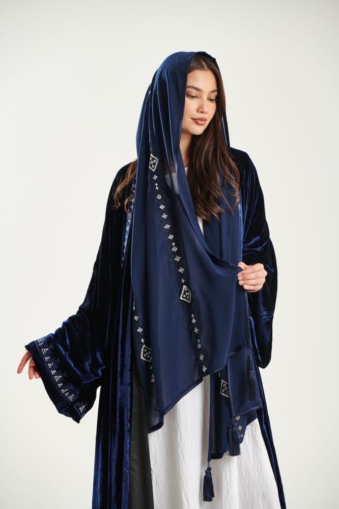 عباية بتطريز يدوي مع طرحة مطرزة بالكامل وبالأطراف ببطانة كاملة