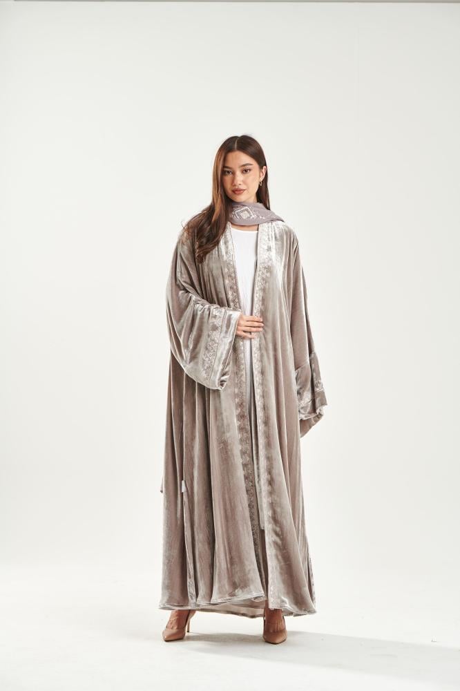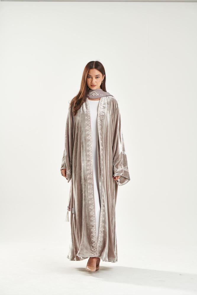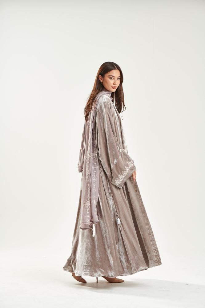عباية بتطريز يدوي مع طرحة مطرزة بالكامل وبالأطراف ببطانة كاملة