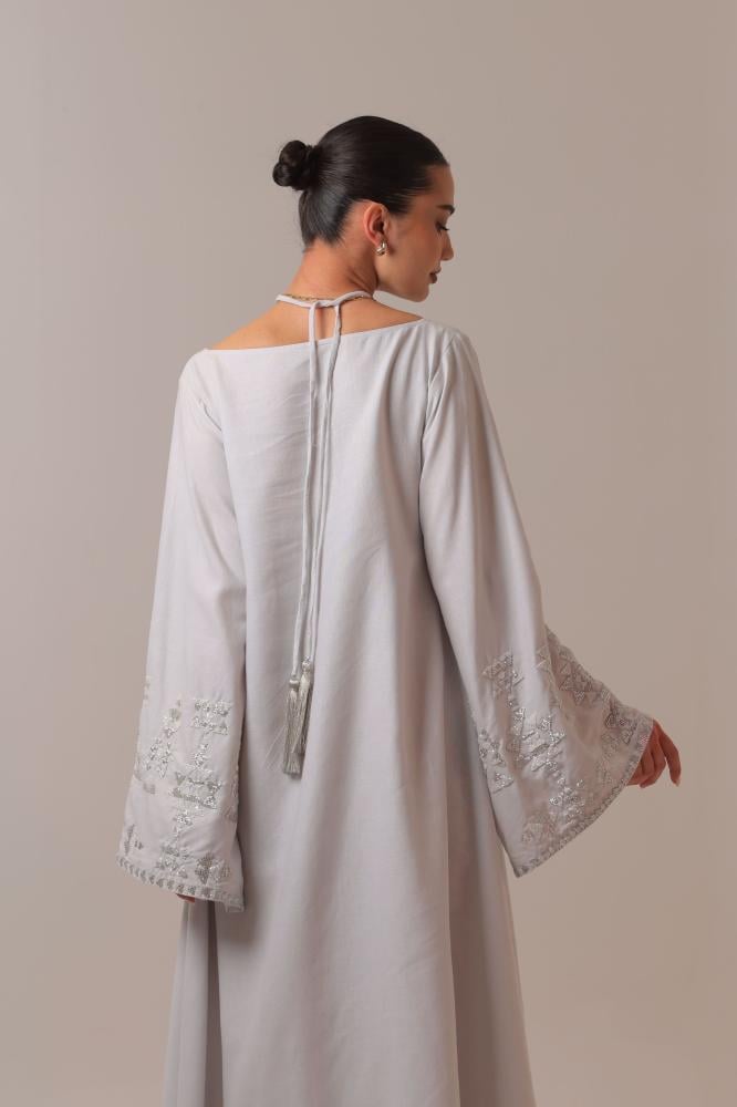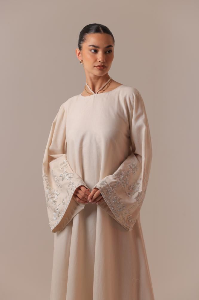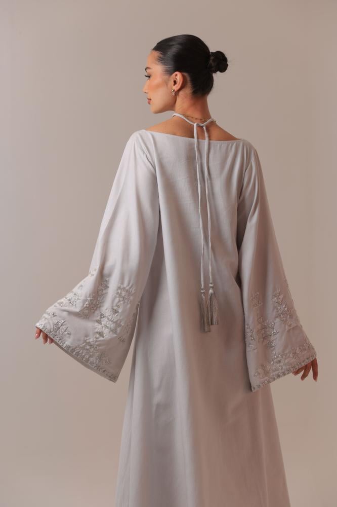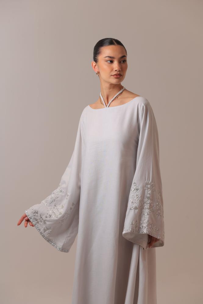 مصمم بقصة كلوش ومبطن بقماش شيفون ناعم