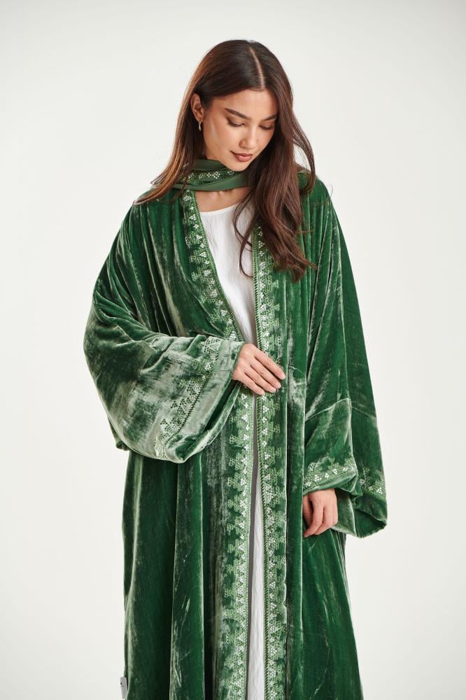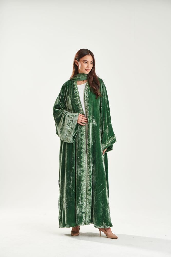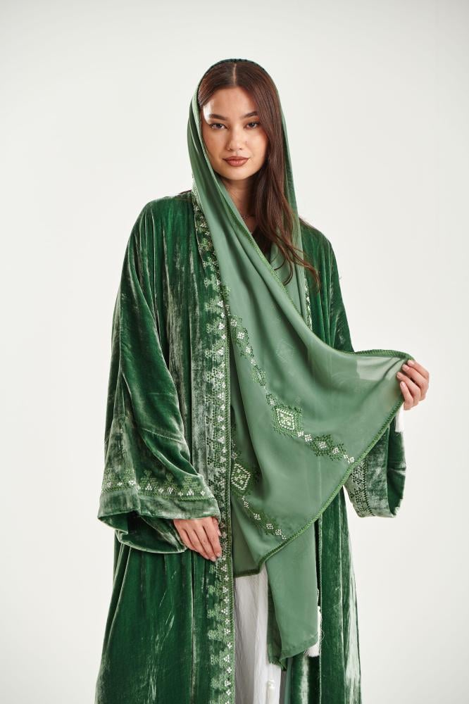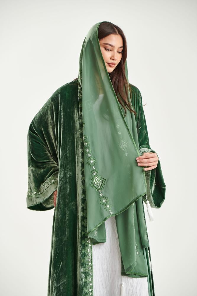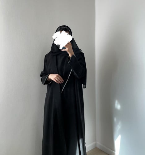 عباية بتطريز يدوي مع طرحة مطرزة بالكامل وبالأطراف ببطانة كاملة
