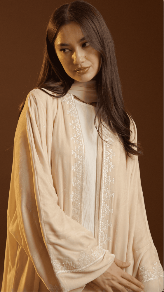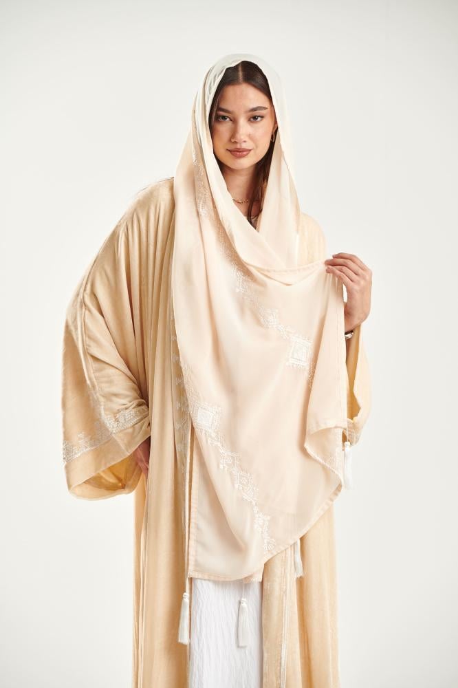 عباية بتطريز يدوي مع طرحة مطرزة بالكامل وبالأطراف ببطانة كاملة